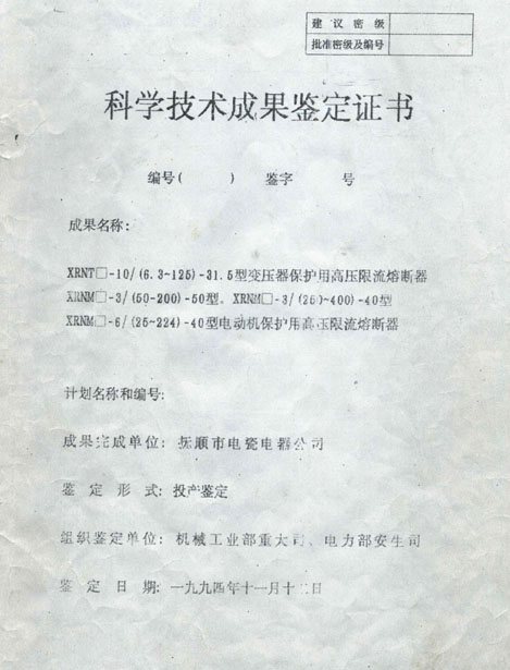 撫順電瓷廠電瓷電器公司是原機械工業(yè)部定點生產高壓隔離開關、高壓熔斷器、絕緣子、避雷器的骨干企業(yè)之一。生產歷史悠久,技術力量雄厚,產品質量可靠,產品遍及全國,遠銷國處。具備高壓隔離開關、高壓熔斷器的設計、開發(fā)及批量生產的能力。擁有英國BRUSH公司具有國際先進水平的高壓熔斷器制造技術和生產線關鍵設備,完備的檢測儀器。能夠批量生產符合國家和國際標準的3.6kv-40.5kv各種規(guī)格的戶內外高壓隔離開關、高壓限流熔斷器系列產品。產品在國家高壓電器質量監(jiān)督檢測中心通過全部型式并取得了兩部鑒定和型號證書,是國家經貿委城農網改造的推薦產品,通過了ISO9002國際質量體系認證,曾榮獲機械部科技進步二等獎和地方優(yōu)秀新產品獎。